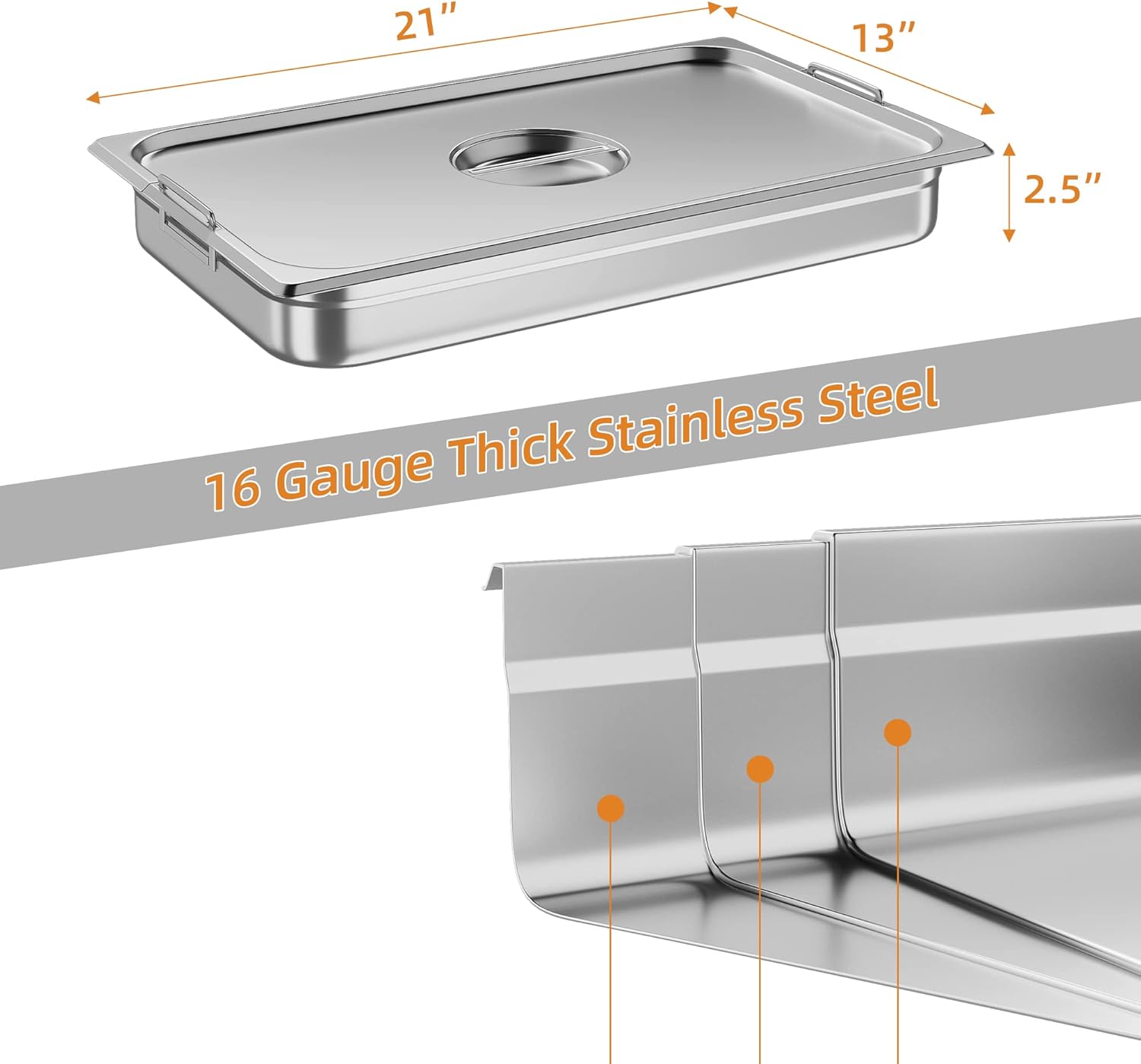 6 Pack Stainless Steel Steam Table Pan, 2.5” Deep Hotel Pans with Handle & Lid 21″ L x 13″ W, Restaurant Supplies Stainless Buffet Pans: Industrial & Scientific