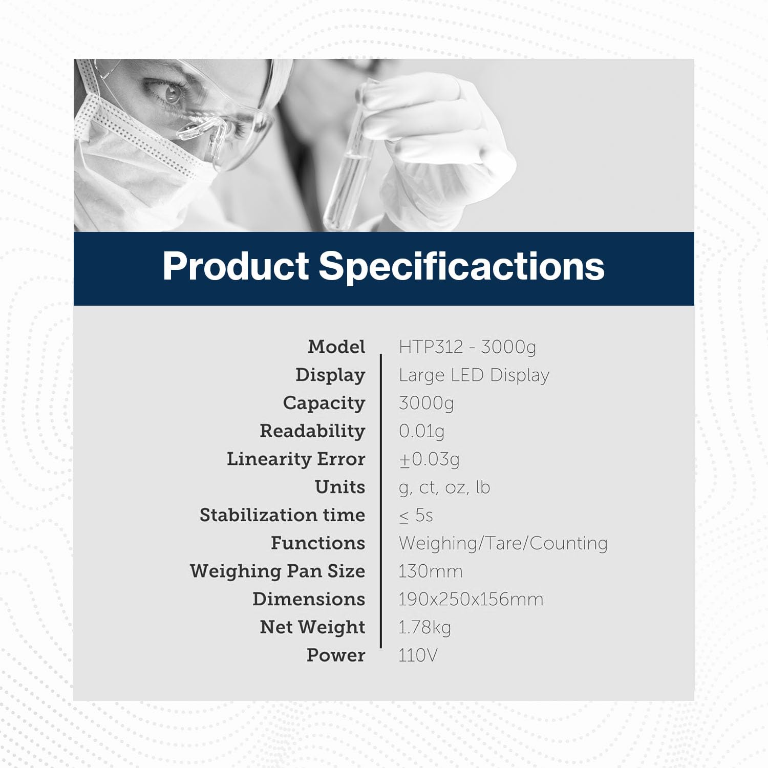 Lab Precision — The lab balance is accurate to 0.01 g. The linearity error is ±0.03 g.