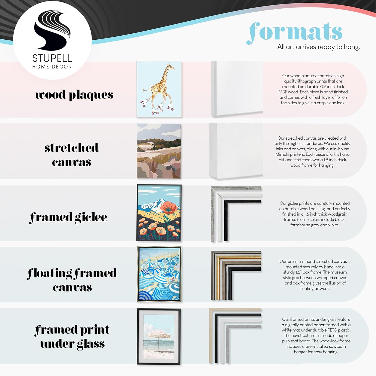 Add dimension to any room with our textured Framed Giclee Artwork. Our framed artwork is securely mounted into a 1.5-inch thick wood grain frame and ready to hang. Frames are available in three alluring styles: black, gray farmhouse and white. In addition, you should check out our oversized options if you want a statement piece. Stupell Industries Wall Art is made in the USA.